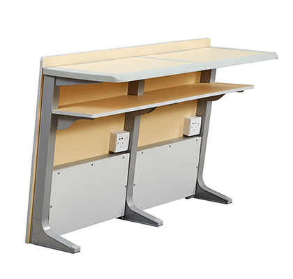 3.写字台:台面板采用中纤板面压防火板,台面架及支撑座采用优质铝合金材质经模具压铸成型