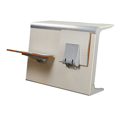 3.写字台:台面板采用中纤板面压防火板,台面架及支撑座采用优质铝合金材质经模具压铸成型